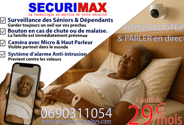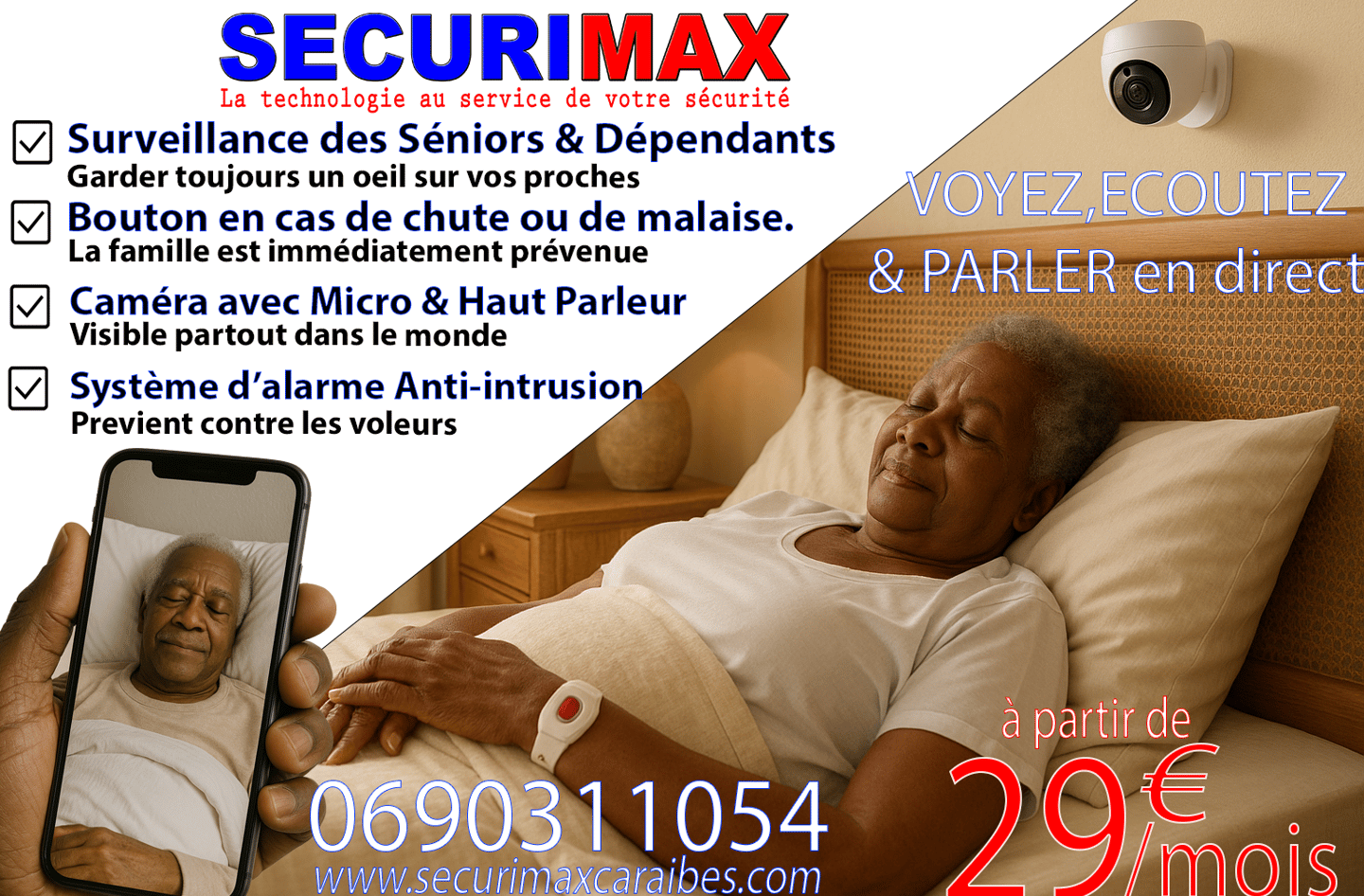 La téléassistance permet aux personnes âgées, isolées ou en situation de dépendance de rester chez elles tout en étant surveillez à distance par leurs proches ou un centre de veille. Grâce à un dispositif discret (bracelet ou pendentif connecté), la personne peut déclencher une alerte instantanée en cas de chute, malaise ou besoin d’aide. Des caméras discrètes peuvent être installées dans la chambre ou à l’extérieur du domicile(ex: jardin,couloir,cuisine etc..) pour permettre aux proches de veiller à distance, en toute tranquillité.Chez Securimax , nous installons des solutions simples, fiables et connectées, adaptées à chaque profil. Une pression sur un bouton suffit pour prévenir automatiquement un proche ou un professionnel. Nos systèmes fonctionnent avec ou sans ligne téléphonique, et permettent également un suivi régulier de l’activité (détection d’inactivité, alarme anti-intrusion, etc.).Ce service renforce la tranquillité d’esprit des familles tout en respectant l’intimité et l’indépendance des personnes accompagnées. La téléassistance, c’est avant tout la sécurité à domicile, sans renoncer à sa liberté.